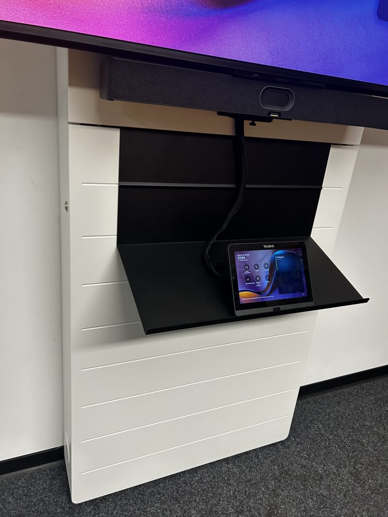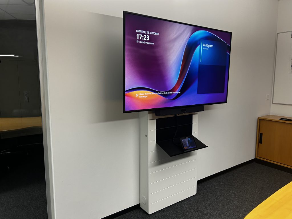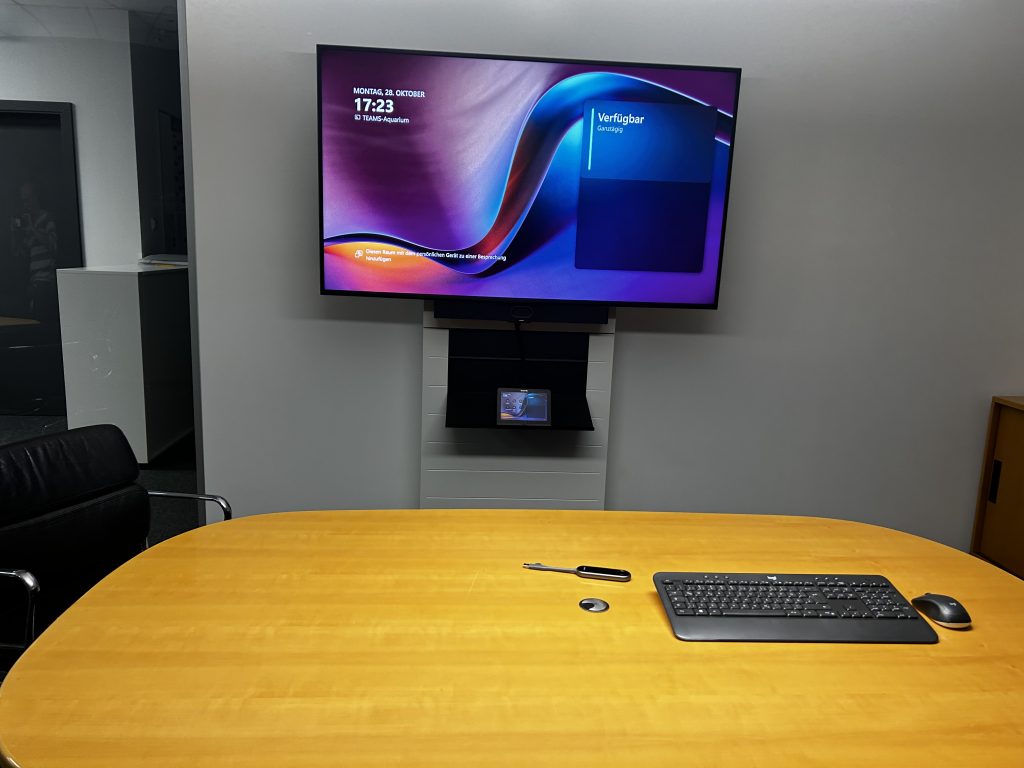 Regnauer Fertigbau hat seinen neuen Videokonferenzraum für bis zu fünf Personen mit modernster Medientechnik ausgestattet. Ziel war es, eine flexible und benutzerfreundliche Lösung für hybride Meetings zu schaffen. Das Herzstück bildet ein 65-Zoll-4K-Display auf einer eleganten Stele, ergänzt durch ein leistungsstarkes Microsoft Teams-Videokonferenzsystem mit Touch-Bedienung. Die Integration einer